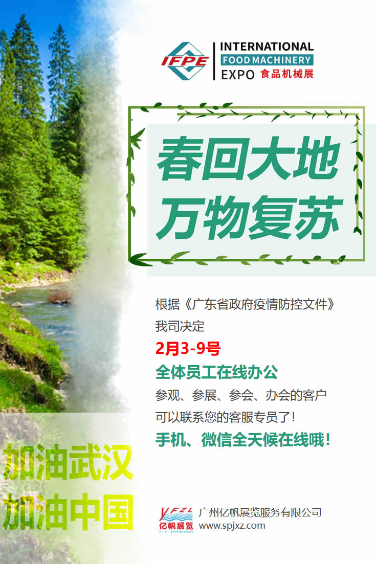 根據(jù)《廣東省政府疫情防控文件》我司決定2月3-9號(hào)全體員工在線辦公參觀、參展、參會(huì)、辦會(huì)的客戶可以聯(lián)系您的客服專員了!手機(jī)、微信全天候在線哦!