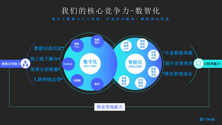 作為智慧商業(yè)解決方案領(lǐng)導(dǎo)者,廣州大麥以數(shù)據(jù)、創(chuàng)新為核心,以技術(shù)為驅(qū)動(dòng),為零售提供電商解決方案和實(shí)施服務(wù),包括咨詢服務(wù),數(shù)字營(yíng)銷、消費(fèi)者運(yùn)營(yíng)、推廣營(yíng)銷和電商運(yùn)營(yíng)解決方案。我們擁有服務(wù)大快消、大服飾、食品機(jī)械等行業(yè)的豐富經(jīng)驗(yàn)。行業(yè)專家根據(jù)客戶情況組建項(xiàng)目團(tuán)隊(duì),針對(duì)電商業(yè)態(tài)面臨的挑戰(zhàn),將深厚的行業(yè)知識(shí)與嶄新的營(yíng)銷視角相結(jié)合,為客戶提供突破性的增長(zhǎng)洞見,與在數(shù)字化經(jīng)濟(jì)環(huán)境下共建同進(jìn),實(shí)現(xiàn)“品效合一”的協(xié)同增長(zhǎng)。廣州大麥不僅是天貓TEP生態(tài)合作伙伴,還榮獲阿里數(shù)據(jù)銀行、策略中心、UniDesk三重認(rèn)證。并憑借先進(jìn)的技術(shù)與優(yōu)質(zhì)的服務(wù)連續(xù)多年獲得行業(yè)內(nèi)各項(xiàng)大獎(jiǎng),包括阿里數(shù)據(jù)科學(xué)家強(qiáng)算法獎(jiǎng)、數(shù)據(jù)銀行黑馬先鋒獎(jiǎng)、電商“奧斯卡”金麥獎(jiǎng)良好創(chuàng)新營(yíng)銷獎(jiǎng)、金蜜蜂良好整合營(yíng)銷獎(jiǎng)、阿里媽媽創(chuàng)新貢獻(xiàn)獎(jiǎng)等。