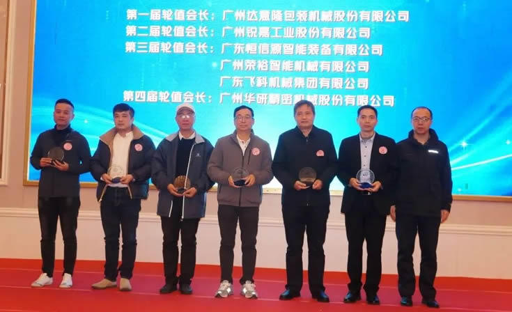 年會(huì)期間,廣東省食品和包裝機(jī)械行業(yè)協(xié)會(huì)還舉行了第四屆輪值會(huì)長(zhǎng)交接儀式系列活動(dòng),廣州華研精密機(jī)械股份有限公司榮獲此次輪值會(huì)長(zhǎng)單位。