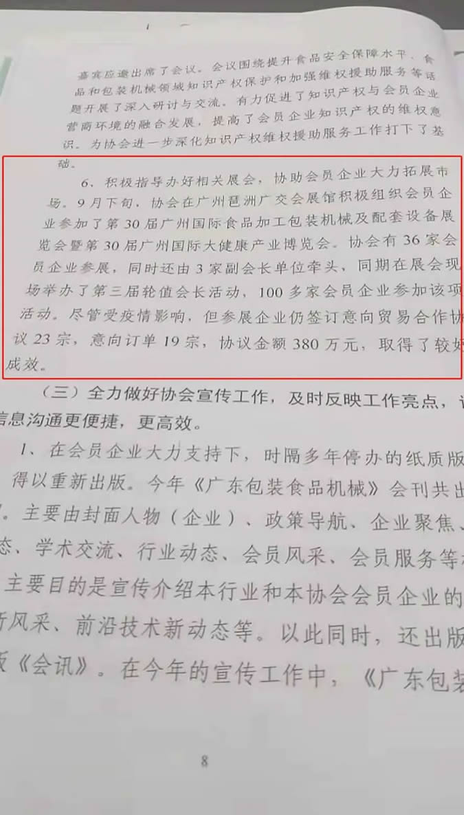 9月下旬,廣東省食品和包裝機(jī)械行業(yè)協(xié)會(huì)組織36家會(huì)員企業(yè)參展,同時(shí)還由3家副會(huì)長(zhǎng)單位牽頭、同期在展會(huì)現(xiàn)場(chǎng)舉辦了第三屆輪值會(huì)長(zhǎng)活動(dòng)、100多家會(huì)員企業(yè)參加該項(xiàng)活動(dòng)。盡管受疫情影響,參展企業(yè)仍簽訂意向貿(mào)易合作協(xié)議23宗,意向訂單19宗,協(xié)議金額380萬(wàn)元。
