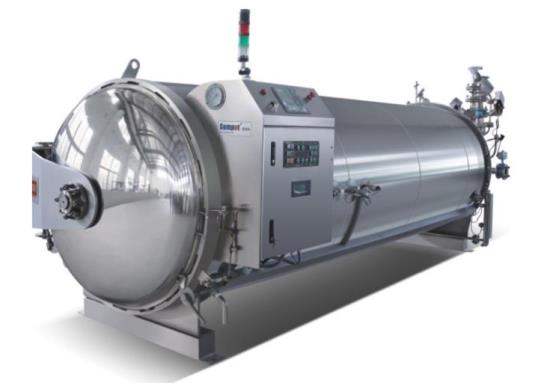 汽氣混合殺菌市指將蒸汽直接噴射到殺菌釜內(nèi)與空氣混合進行殺菌的方法。釜內(nèi)空氣和蒸汽被風(fēng)扇強制沿風(fēng)道作內(nèi)循環(huán),以達到殺菌釜內(nèi)溫度均勻分步的目的。