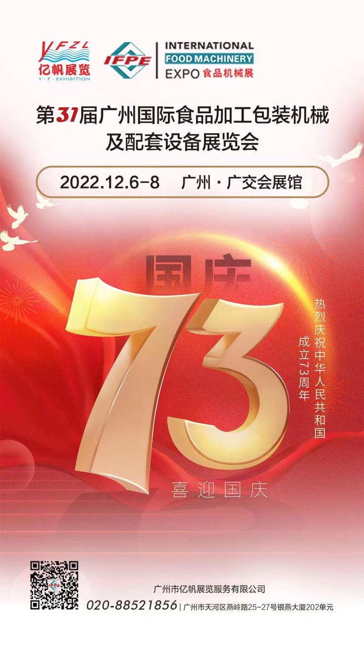 熱烈慶祝中華人民共和國成立73周年!丨IFPE食品機械展會