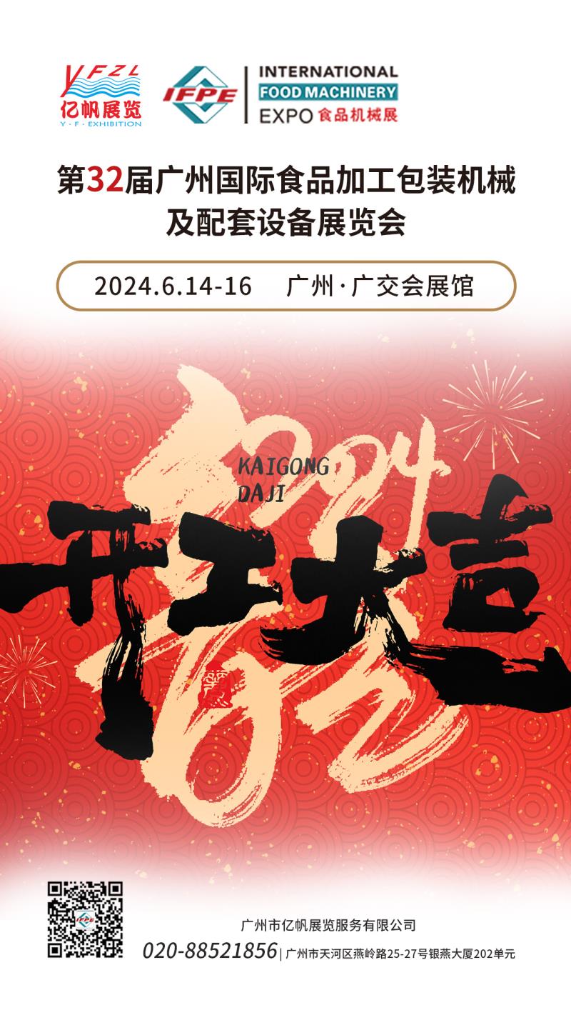 第34屆廣州國際食品加工包裝機(jī)械及配套設(shè)備展覽會(IFPE)將于2026年6月4-6日在廣州?廣交會展館舉行,IFPE食機(jī)展會由廣州市億帆展覽服務(wù)有限公司主辦,經(jīng)過多年的積淀與發(fā)展,已成為一個集食品生產(chǎn)、加工、包裝、食品招商全產(chǎn)業(yè)鏈于一體的行業(yè)品牌盛會。IFPE食機(jī)展與廣州國際大健康產(chǎn)業(yè)博覽會(IHE China大健康展)同期舉辦,將聯(lián)手為業(yè)內(nèi)人士搭建一個技術(shù)交流、促進(jìn)合作、擴(kuò)大上下游貿(mào)易、提高品牌和企業(yè)知名度的高品質(zhì)商貿(mào)平臺。