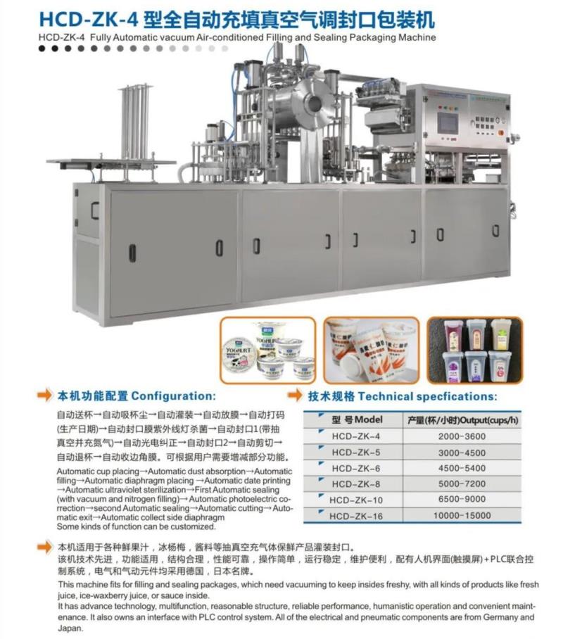 宏誠機械主要為客戶定制,碗裝,杯裝,盒裝,瓶裝及抽真空氣調(diào)封口機,自立袋灌裝旋蓋機,棒棒冰灌裝封口機,自動巴氏消毒殺菌烘干線及后道自動包裝線解決方案。能夠依據(jù)客戶需求設(shè)計定制各類食品包裝機械設(shè)備。