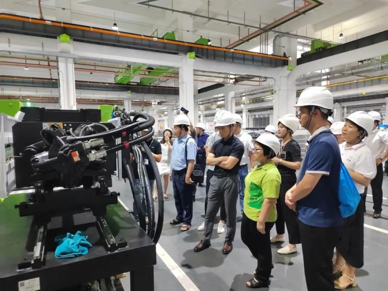 第三階段是赴廣東伊之密精密機(jī)械股份有限公司(簡稱“伊之密”)參訪交流,在伊之密注塑機(jī)事業(yè)部市場總監(jiān)彭德強(qiáng)的帶領(lǐng)下,參觀了數(shù)字化工廠及全球創(chuàng)新中心。