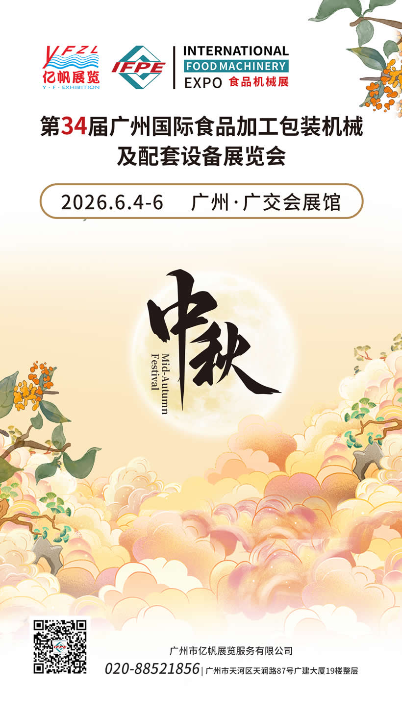 第34屆廣州國際食品加工包裝機械及配套設(shè)備展覽會(IFPE)將于2026年6月4-6日在廣州?廣交會展館舉行,IFPE食機展會由廣州市億帆展覽服務(wù)有限公司主辦,經(jīng)過多年的積淀與發(fā)展,已成為一個集食品生產(chǎn)、加工、包裝、食品招商全產(chǎn)業(yè)鏈于一體的行業(yè)品牌盛會。IFPE食機展與廣州國際大健康產(chǎn)業(yè)博覽會(IHE China大健康展)同期舉辦,將聯(lián)手為業(yè)內(nèi)人士搭建一個技術(shù)交流、促進(jìn)合作、擴大上下游貿(mào)易、提高品牌和企業(yè)知名度的高品質(zhì)商貿(mào)平臺。