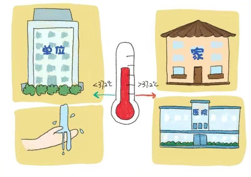 進入辦公樓前自覺接受體溫檢測,體溫正??扇霕枪ぷ?,并到衛(wèi)生間洗手。若體溫超過37.2℃,請勿入樓工作,并回家觀察休息,必要時到醫(yī)院就診。