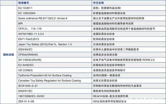 目前國(guó)際上對(duì)食品接觸材料的安全監(jiān)督管理主要有兩大模式:美國(guó)模式和歐盟模式。在此,我們列舉部分國(guó)內(nèi)以及歐美的法規(guī)和標(biāo)準(zhǔn)作為參考和說(shuō)明: