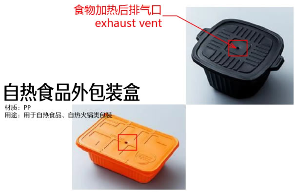 通過(guò)在發(fā)熱劑中加入水后的化學(xué)反應(yīng)發(fā)產(chǎn)生加溫,再將提前預(yù)熟的食材包里的食材和鍋底充分加熱的一種方便的加熱方式。
