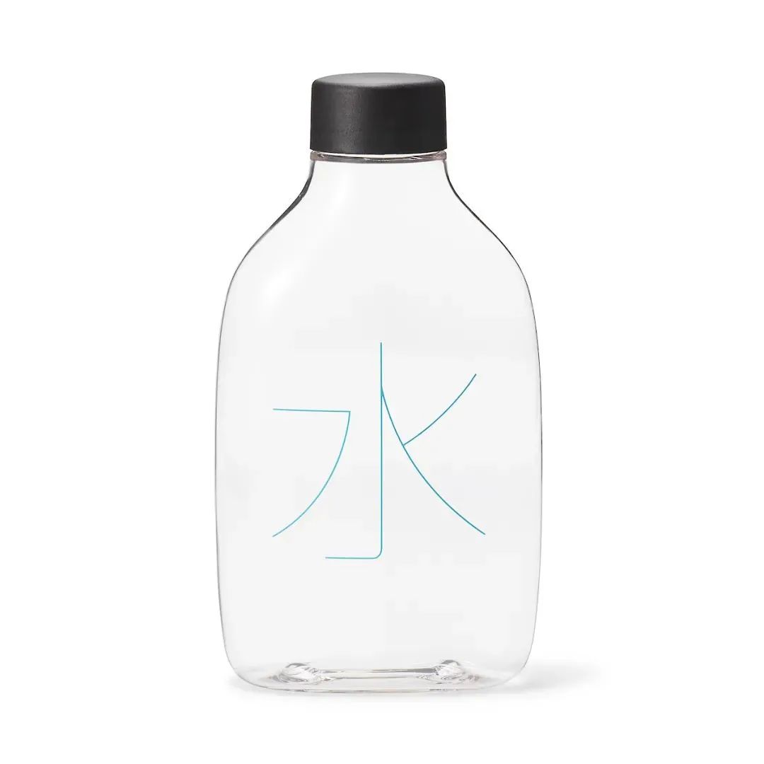 為了輕便好攜帶,muji將水瓶設(shè)計成扁平狀,加上標(biāo)志性的簡約設(shè)計,瓶身印了一個巨大的“水”字。