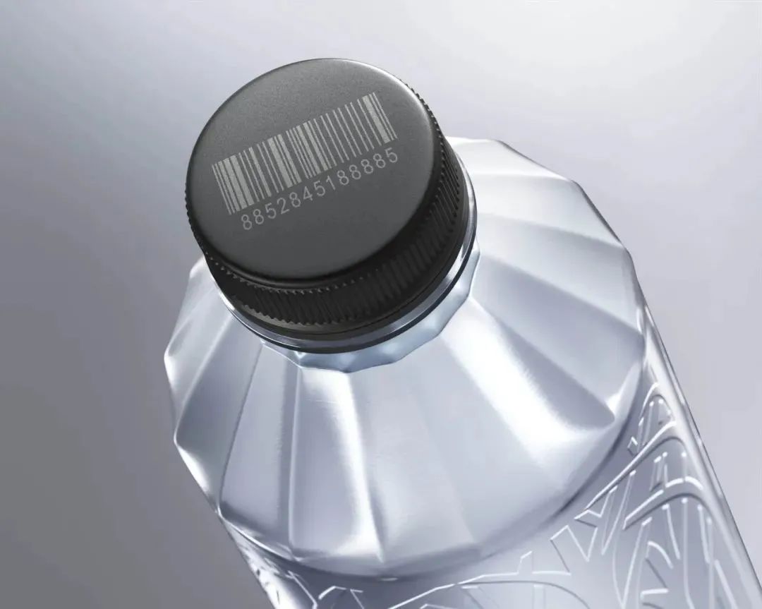 礦泉水品牌依云(Evian),在新加坡推出首款無標(biāo)簽、100%可回收PET (rPET)瓶子。瓶蓋和瓶身都使用了可回收塑料,并且進(jìn)行了浮雕式的微標(biāo)處理。