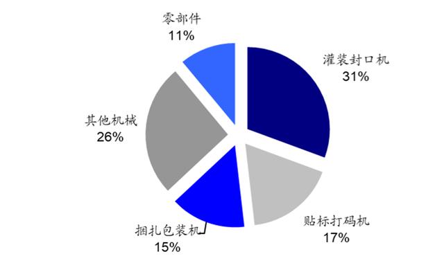 包裝機(jī)械在我國屬于新興行業(yè),起步較晚,經(jīng)過30多年的發(fā)展,現(xiàn)已成為機(jī)械工業(yè)中的十大行業(yè)之一。近年來,在我國人均消費(fèi)水平提高、消費(fèi)需求升級(jí)換代的持續(xù)拉動(dòng)下,食品、飲料、醫(yī)藥、化工、家用電器、造幣印鈔、機(jī)械制造、倉儲(chǔ)物流、建筑材料、金屬制造、造紙印刷、圖書出版等眾多行業(yè)領(lǐng)域生產(chǎn)企業(yè)把握發(fā)展機(jī)遇,不斷擴(kuò)大生產(chǎn)規(guī)模,提高市場競爭力,為我國包裝機(jī)械行業(yè)快速發(fā)展提供了有效保障。從行業(yè)規(guī)模來看,行業(yè)整體規(guī)模自2013年起開始穩(wěn)步增長;從下游應(yīng)用領(lǐng)域來看,國內(nèi)包裝設(shè)備終端應(yīng)用領(lǐng)域結(jié)構(gòu)與全球結(jié)構(gòu)類似,前三大領(lǐng)域同樣為食品、飲料以及醫(yī)藥行業(yè),占比分別為33%、21%、11%。對(duì)于包裝設(shè)備大行業(yè)而言,灌裝封口機(jī)、貼標(biāo)打碼機(jī)和捆 扎包裝機(jī)占比過半,是最主要的市場。