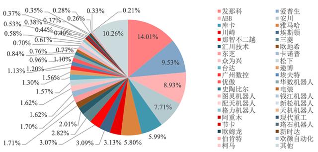2020年中國(guó)工業(yè)機(jī)器人市場(chǎng)份額(以出貨量計(jì))