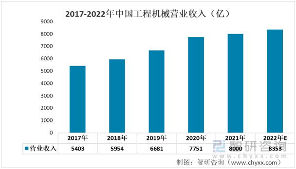 工程機械行業(yè)為工業(yè)自動化主要的應(yīng)用下游。近年來,中國工程機械行業(yè)營業(yè)收入穩(wěn)步增長。2017年我國工程機械行業(yè)營業(yè)收入突破5000億元,2018年逼近6000億元,2020年突破7000億元,2021年工程機械行業(yè)營業(yè)收入首次突破8000億元。預(yù)計2022年我國工程機械行業(yè)營業(yè)收入將進一步達到8353億元。