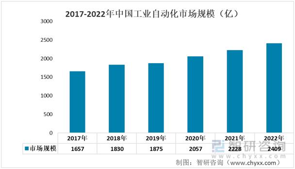 隨著科技水平的不斷提升,我國新興產(chǎn)業(yè)蓬勃發(fā)展為我國工業(yè)自動化市場提供了廣闊的空間,我國工業(yè)自動化控制技術(shù)、產(chǎn)業(yè)和應(yīng)用有了很大發(fā)展。近年來我國工業(yè)自動化市場規(guī)模持續(xù)上升,2022年我國工業(yè)自動化市場規(guī)模達到了2409億。