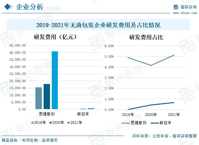 制新產(chǎn)品,為客戶提供定制化服務(wù),實(shí)現(xiàn)無菌包裝產(chǎn)品銷量的快速增長(zhǎng)。2019-2021年,公司的研發(fā)費(fèi)用持續(xù)增長(zhǎng),到2021年公司的研發(fā)費(fèi)用達(dá)到40917.87億元,較2020年增長(zhǎng)130%,占總營(yíng)業(yè)收入的比重為5.13%。新巨豐為了應(yīng)對(duì)日益激烈的競(jìng)爭(zhēng),公司重視研發(fā)對(duì)可持續(xù)發(fā)展的重要性,不斷提高企業(yè)的創(chuàng)新能力,在2021年,公司的研發(fā)費(fèi)用達(dá)到832.39億元,較2020年同比上升了90%,占總營(yíng)業(yè)收入的比重為0.67%。