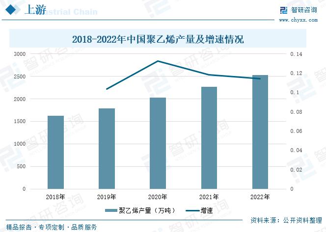 無菌包裝的內(nèi)部結(jié)構(gòu)共有7層,從內(nèi)到外依次為聚乙烯、聚合物、鋁箔、聚乙烯、原紙、油墨、聚乙烯。其中聚乙烯被使用了三次,每一次都有不同的作用,最內(nèi)面的一層可以直接接觸內(nèi)容物;中間的一層可以粘結(jié)原紙和鋁箔;最外一層有著防潮、保護(hù)印刷圖案的作用??梢姡瑹o菌包裝對(duì)聚乙烯有著較大的需求量。根據(jù)圖片顯示,聚乙烯的產(chǎn)量不斷增長(zhǎng),2022年,其產(chǎn)量達(dá)到了2532萬噸,較2021年同期上升了11.44個(gè)百分點(diǎn)。聚乙烯的增長(zhǎng)對(duì)于無菌包裝行業(yè)來說有著極大的促進(jìn)作用,能夠?yàn)闊o菌包裝提供較為充足的原材料。